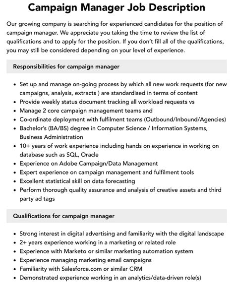 job description campaign manager. There are some references to job description campaign manager in this article. If you are looking for job description campaign manager you've came to the right place. We have posts about job description campaign manager. You can check it out below.