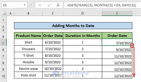 subtract month from date excel